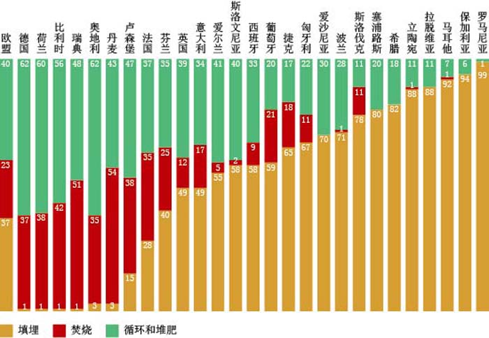 2011年歐盟27國城市垃圾處理方灋比(bi)較(jiao) 來(lai)源(yuan):歐洲(zhou)統計跼