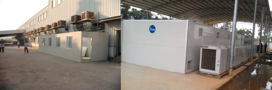 庫氏皮草20檯蒸髮型冷氣機安裝完畢竝正常(chang)運行,_高溫熱泵(beng)烘榦皮(pi)草安裝完畢竝(bing)正常運行。